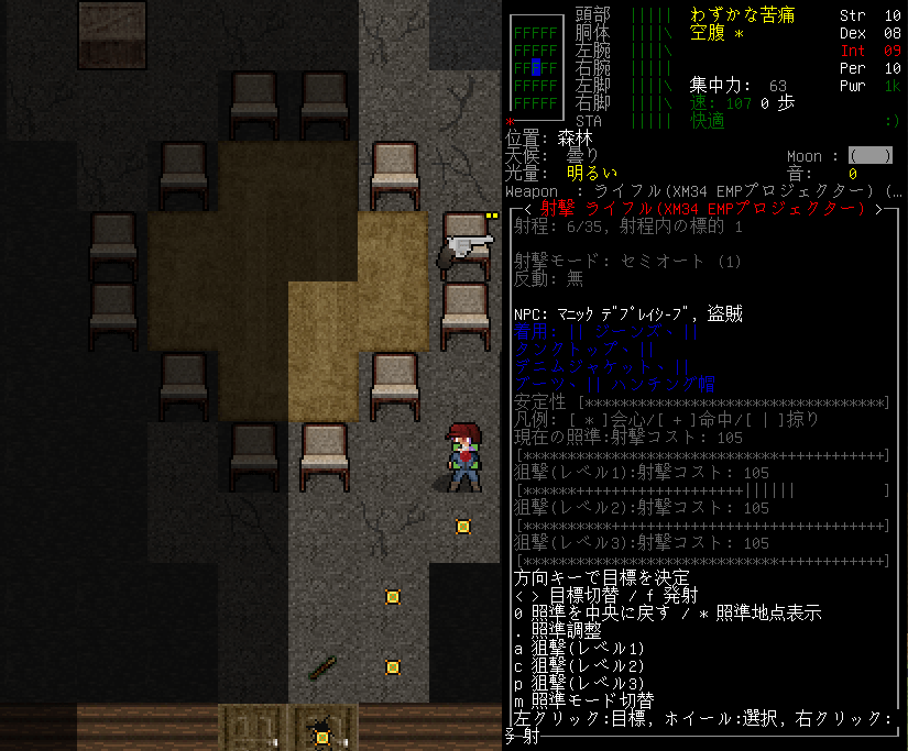Cataclysmのプレイ日記を始めます。へルレイダーのアジトに来ました。無理やりバージョンアップをしたからNPCが襲ってきます。上手いこと野外から狙撃したいですね。