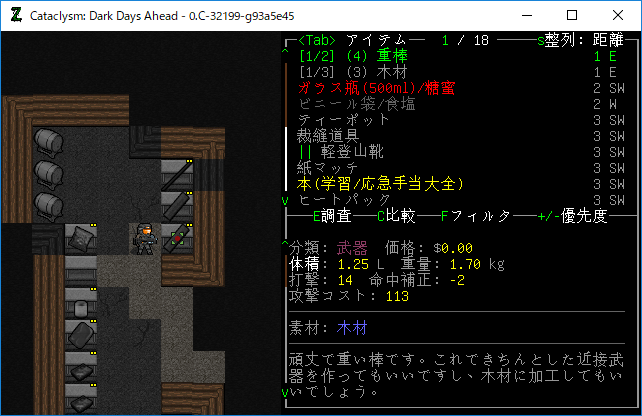 この投稿は「Cataclysm Dark Days Ahead」のプレイ日記です。毎日更新をします。目次はこちら。