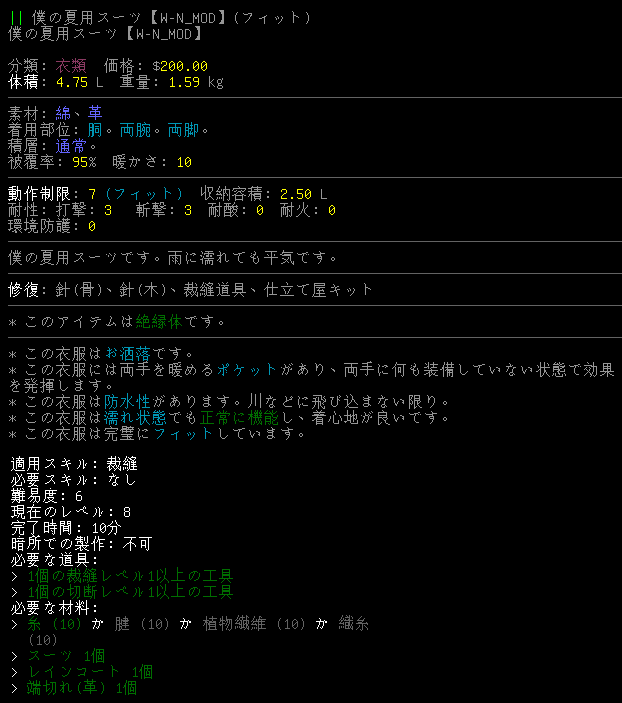 スーツなんて夏くらいしか着用する機会は無いだろう(そんなことないかな)。少なくともアレキダンサーは今しか着る機会がありません。自作MODに暖かさ10の『夏用スーツ』を加えました。