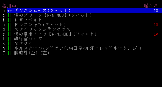 現在の装備は上の図になりました。フォーマルなファッションも楽しめるなんて素晴らしい。スーツを着るならドレスシャツはいらないかな。