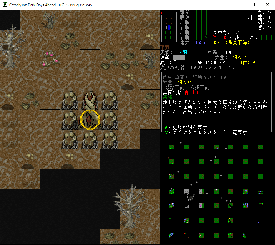 Cataclysmのプレイ日記を始めます。色々と迷走したけど真菌発生源に行こうか。プレイ当時は金曜日の深夜だった。長期戦をするには調度いいタイミングです。