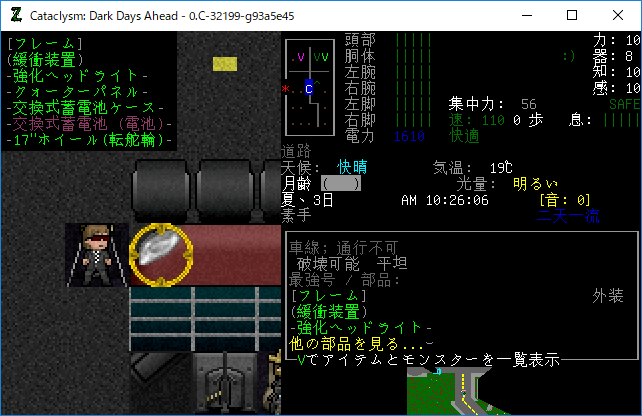 この投稿は「Cataclysm Dark Days Ahead」のプレイ日記です。毎日更新をします。目次はこちら。