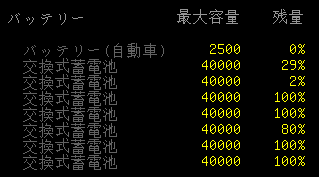 破損した蓄電池からは電力が減少していきます(上の図80%)。面倒くさいけど修理するしかないよね。今回のプレイ日記は蓄電池を修理して中断します。