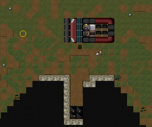 Cataclysmのプレイ日記を始めます。今回は洞窟を探索しようかな。敵NPCの車から30ℓくらいガソリンを貰いました(笑)。