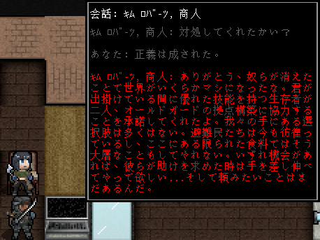 商人に依頼の達成を報告しましょう。商人は喜んでくれたみたいです。それはそうと2人の生存者が避難センターを訪問したんだって。