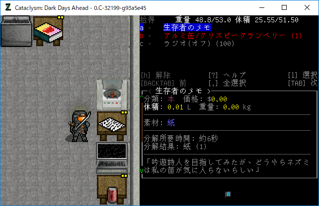 この投稿は「Cataclysm Dark Days Ahead」のプレイ日記です。毎日更新をします。目次はこちら。