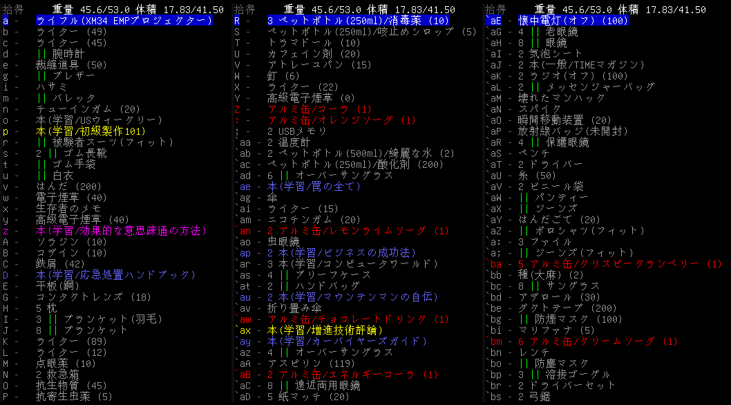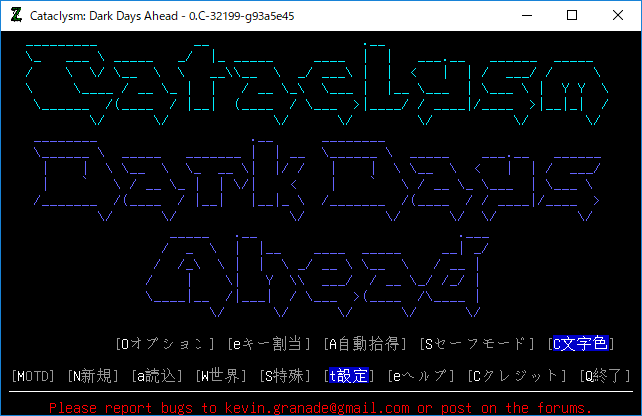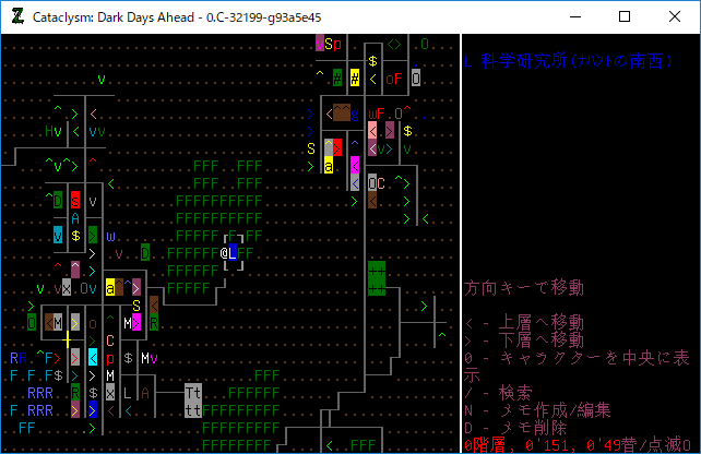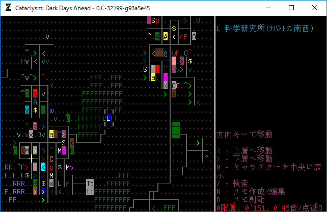 Cataclysmのプレイ日記を始めます。今回は文字の色を変えます。Cataclysm質問スレッド9日目の322、324さんを参考にしました。