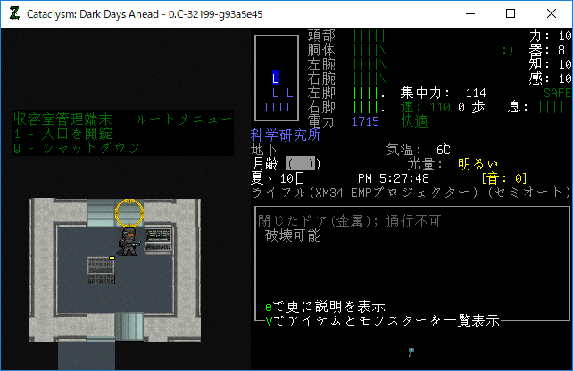 この投稿は「Cataclysm Dark Days Ahead」のプレイ日記です。毎日更新をします。目次はこちら。
