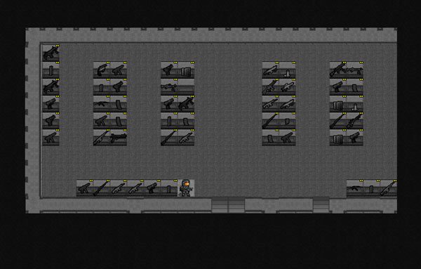 さて、ゲームを再開しよう。前回は兵舎の置くにある部屋に侵入しました。大量の銃器に興奮するもカートが無いから運べません。いったん地上に戻って折り畳み式カートを用意しましょう。
