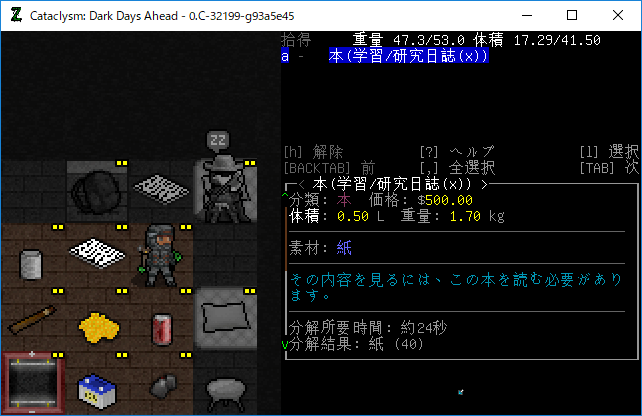 この投稿は「Cataclysm Dark Days Ahead」のプレイ日記です。毎日更新をします。目次はこちら。