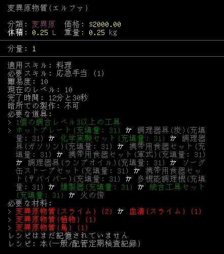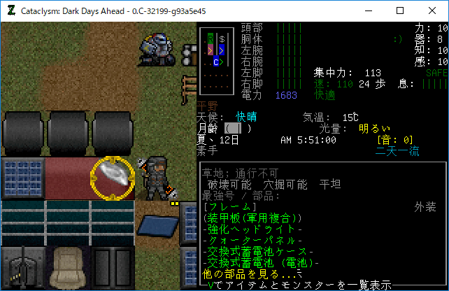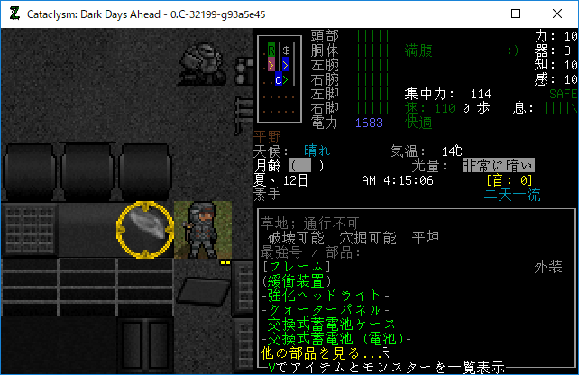 この投稿は「Cataclysm Dark Days Ahead」のプレイ日記です。毎日更新をします。目次はこちら。