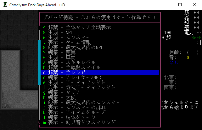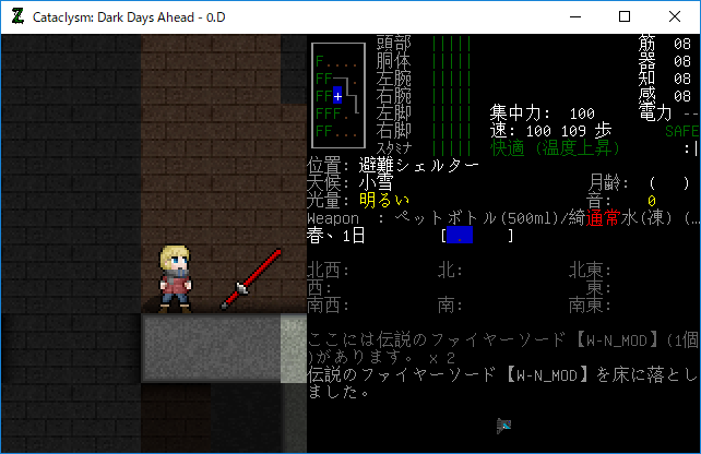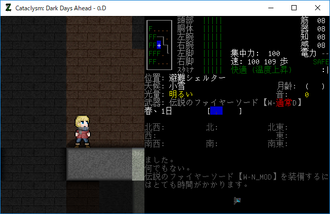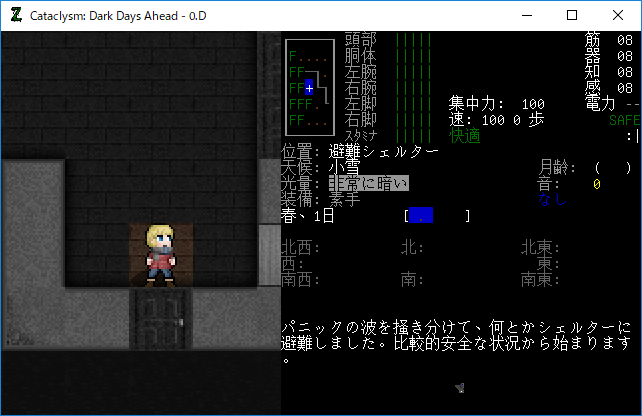 この投稿は「Cataclysm Dark Days Ahead」のプレイ日記です。毎日更新をします。初心者が書いたので真似をしないでください。目次はこちら。
