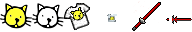 nekoneko.pngに武器のタイルを追加しました。ツヴァイヘンダーを適当に赤く塗ったタイルです。対応させる武器の性能もツヴァイヘンダーと同じにします。IDはneko_test_3ですね。