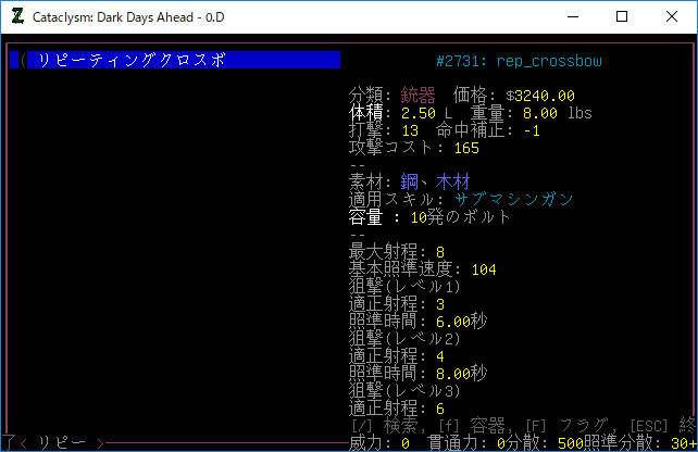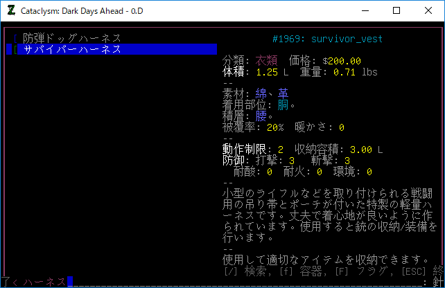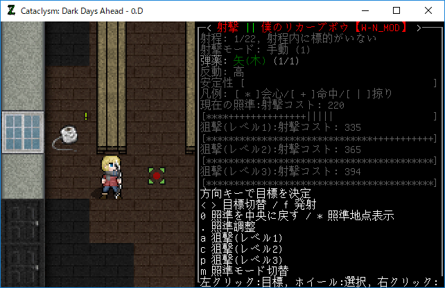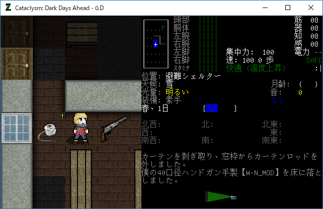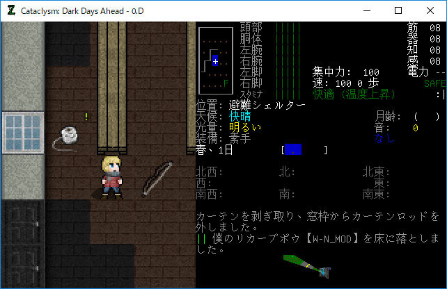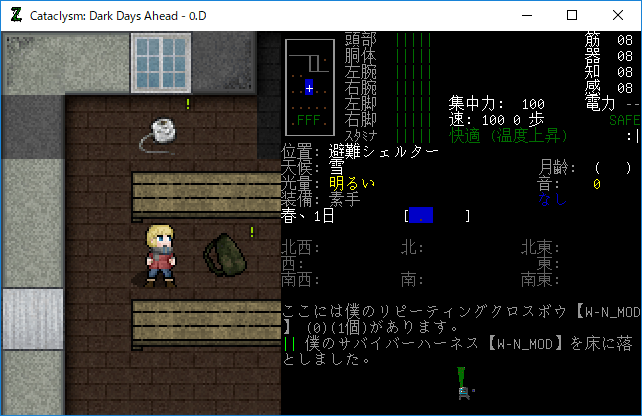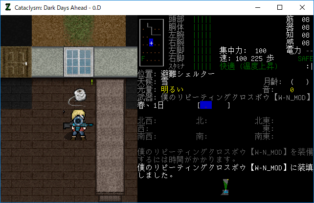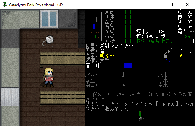 この投稿は「Cataclysm Dark Days Ahead」のプレイ日記です。毎日更新をします。初心者が書いたので真似をしないでください。目次はこちら。
