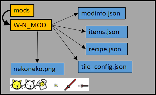 今回は優秀な装備品のjsonデータを自作MODにコピペし続けました。そんで適当にDeadPeopleのタイルを割り当てた。わざわざ本体に記載されているアイテムと同じものをMOD化したのです。無意味なコピペ回になります。