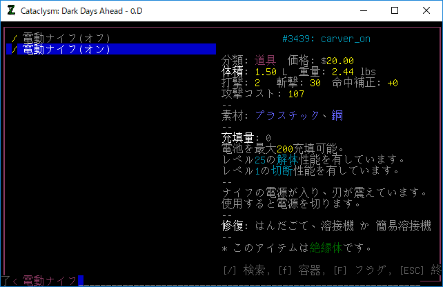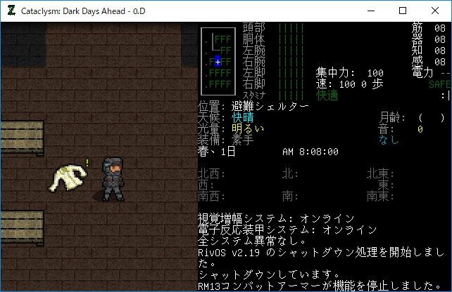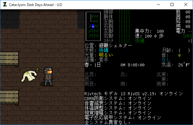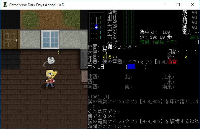 この投稿は「Cataclysm Dark Days Ahead」のプレイ日記です。毎日更新をします。初心者が書いたので真似をしないでください。目次はこちら。