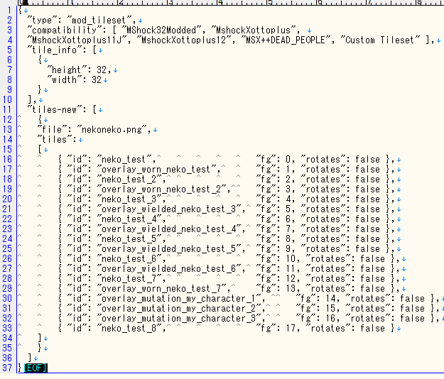 現在のnekoneko.pngは上の画像です。本は装備しないからタイルは1つだけっすね。IDはneko_test_8にしました。このレシピ本はジョークアイテムだからゾンビがドロップするとか本屋に落ちているとかの設定はしません。