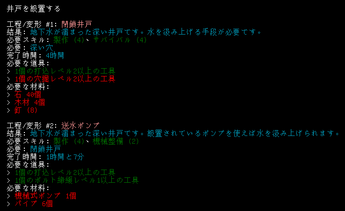 以上の画像により市民農園は建設コマンドで再現可能だと分かった。あとは『井戸』の素材を調べておこう。『石、パイプ、機械式ポンプ』と旅先で用意するのが難しいものばかりですな。面倒くさそうだがアレキサンダー農場に設置したいのだ。