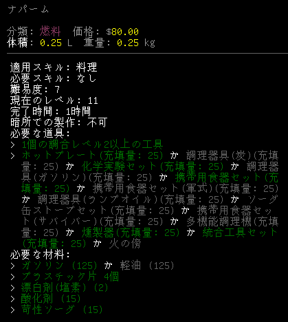 ここでワイの体力が完全に尽きた。最後にナパームを1回クラフトしてプレイ日記を終了します。なぜナパームを作ったのかは覚えていない。頭が痛かったことしか記憶にありません。