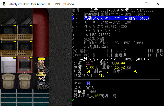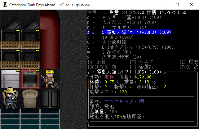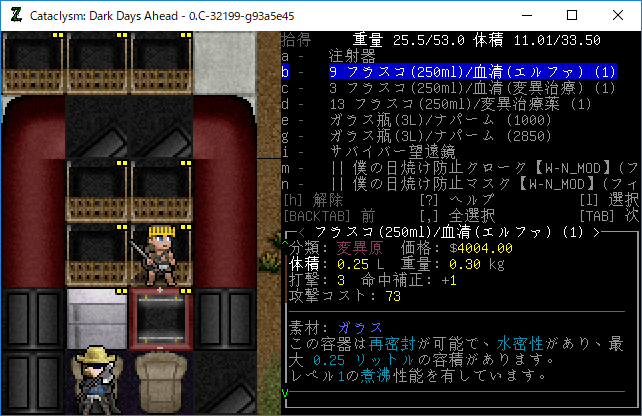 この投稿は「Cataclysm Dark Days Ahead」のプレイ日記です。毎日更新をします。目次はこちら。
