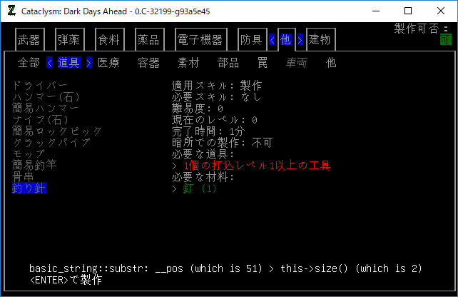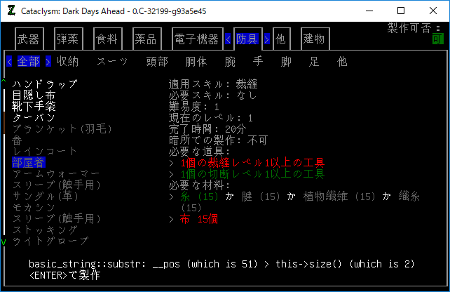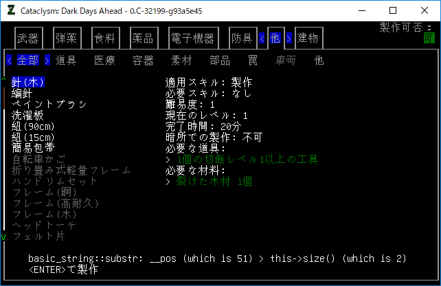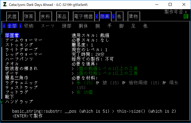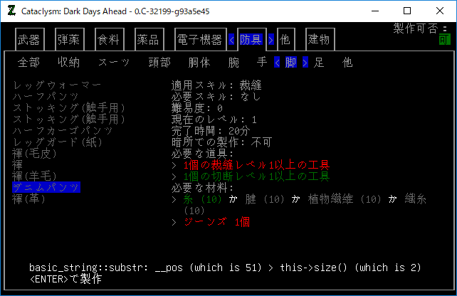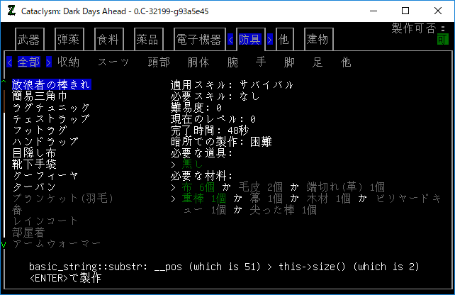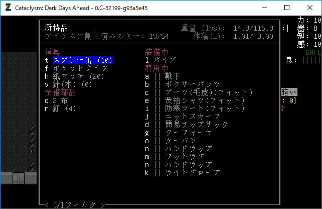 この投稿は「Cataclysm Dark Days Ahead」のプレイ日記です。毎日更新をします。目次はこちら。