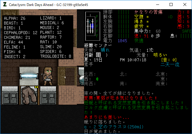 この投稿は「Cataclysm Dark Days Ahead」のプレイ日記です。毎日更新をします。目次はこちら