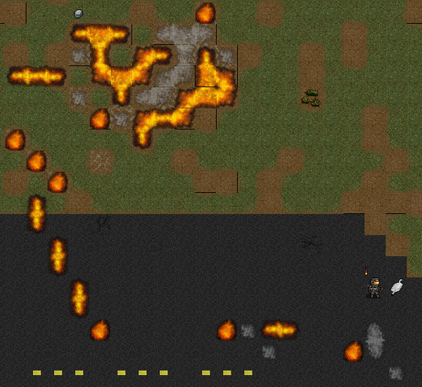 火炎放射器の炎は不安定な位置に出現します。狙い通りの位置を燃やしてくれないこともある。浄化し損ねた苗床にはCBMの小型火炎放射器を使って対応しよう。