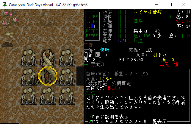 Cataclysmのプレイ日記を始めます。これより最終決戦に向かいます。真菌発生源がまき散らした汚染を再起不能にまで叩きのめしたら勝利と判断するつもりです。