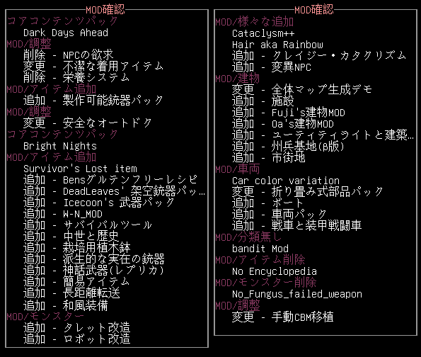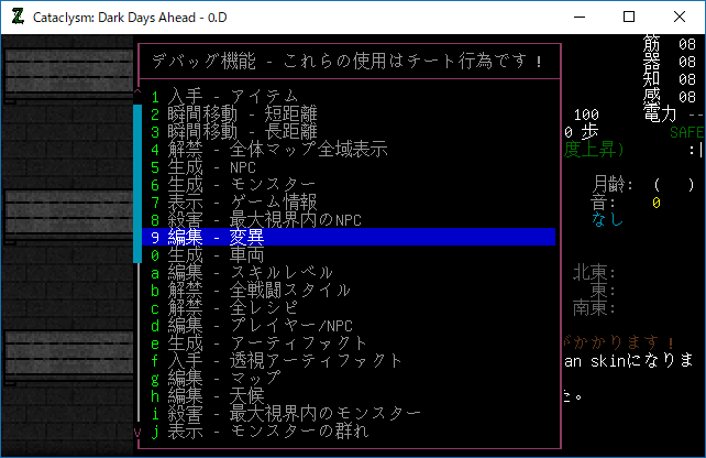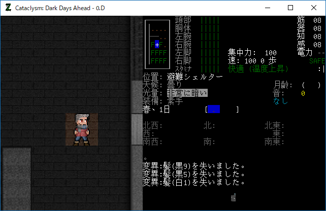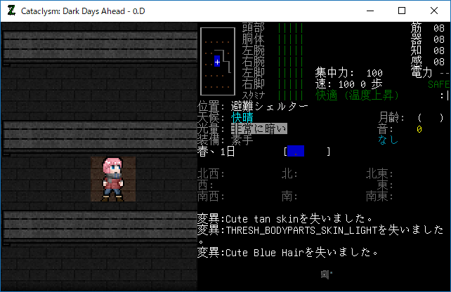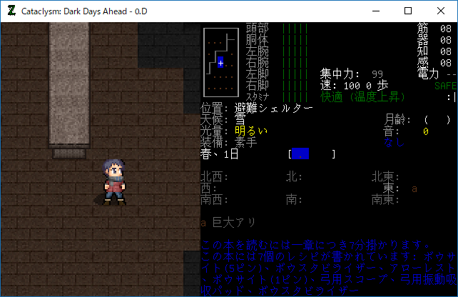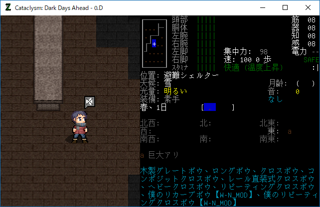この投稿は「Cataclysm Dark Days Ahead」のプレイ日記です。毎日更新をします。目次はこちら。