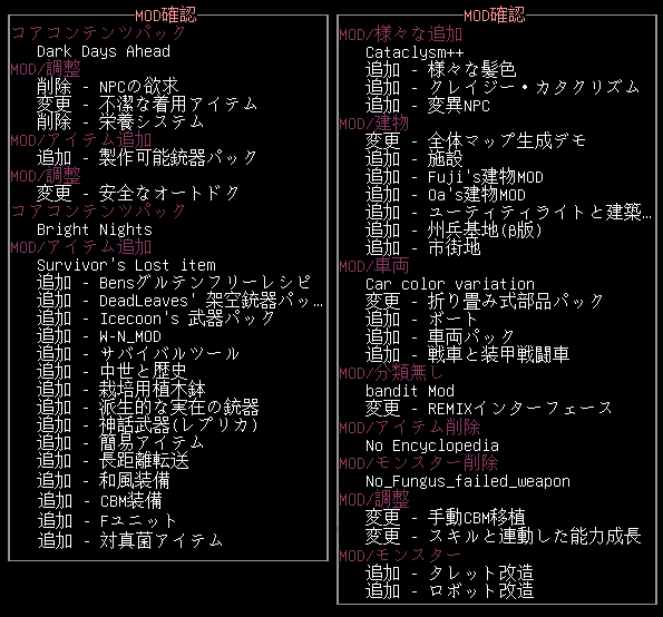 投稿を作成している最中に本スレで『CBM武装MOD』が公開されました。CBM武装MODも使用させて頂きたいと考えております。『対真菌アイテムMOD』も何卒お願い致します。シナリオ学校では上のMODを使う予定です。