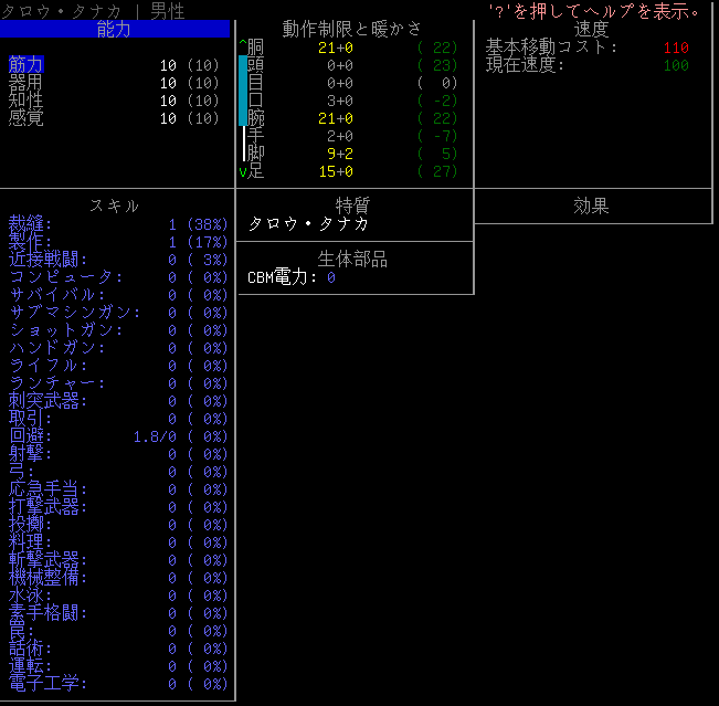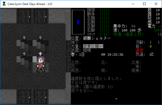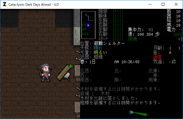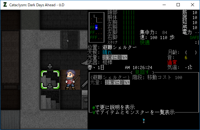 Cataclysmのプレイ日記を始めます。今回も序盤の動きを練習しよう。ここからの行動が難しいんだけどね。