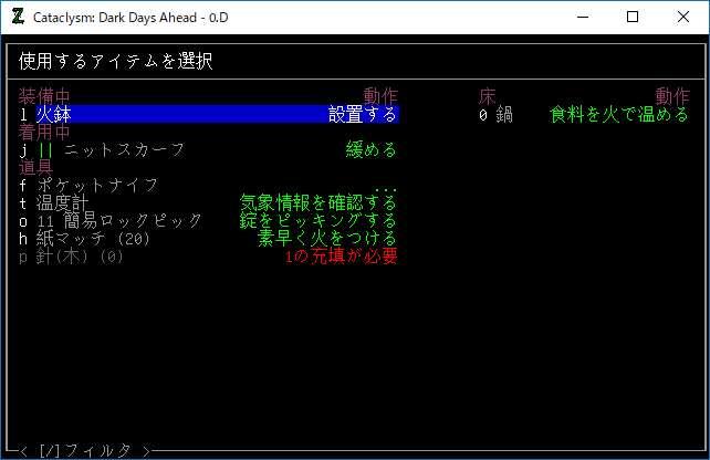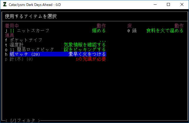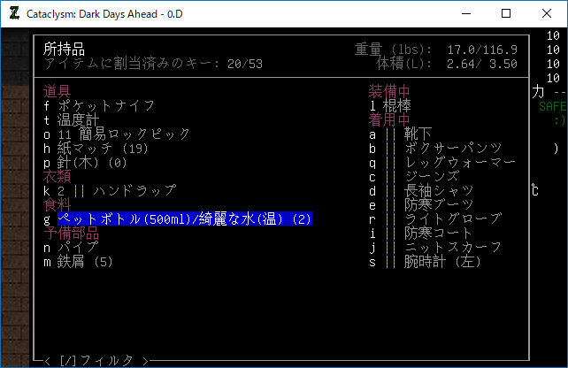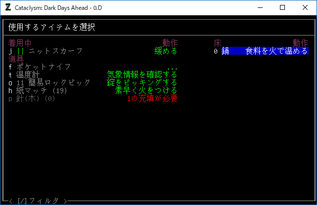 この投稿は「Cataclysm Dark Days Ahead」のプレイ日記です。毎日更新をします。目次はこちら