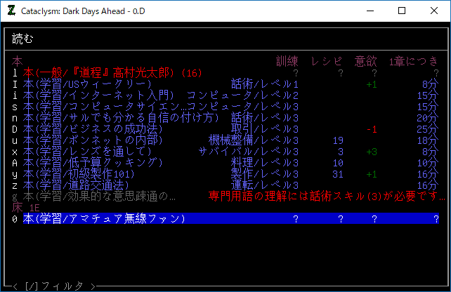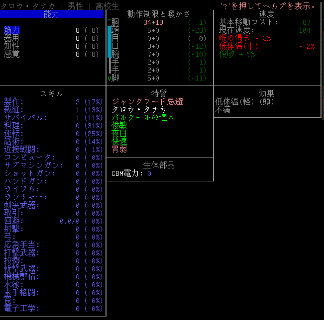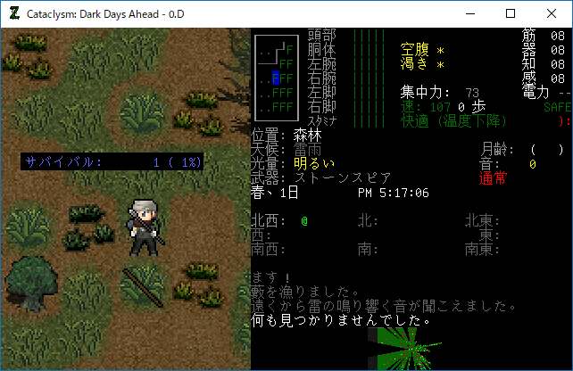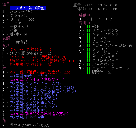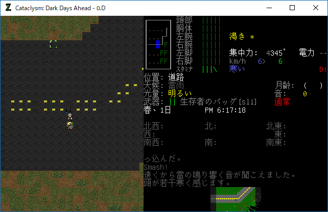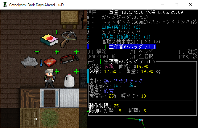 この投稿は「Cataclysm Dark Days Ahead」のプレイ日記です。毎日更新をします。目次はこちら。