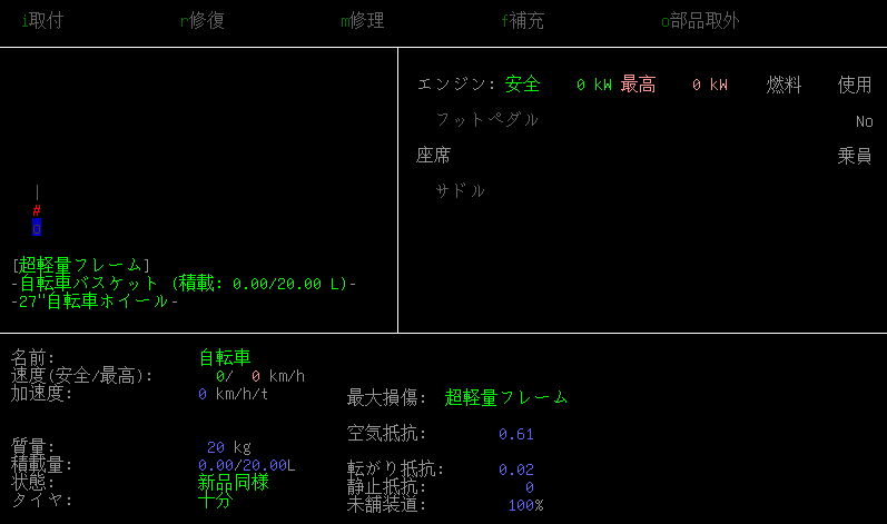 せっかくなので自転車を展開したよ。障害物だらけの場所で展開するなんて無計画すぎる。どうやら自転車の後部にカゴが付いているようだぞ。