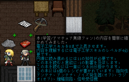 スリングとセルフボウのどちらを作るべきか判断できません。弓のことは忘れて学習本のレシピを確認しましょう。生存者のバックから『アマチュア無線ファン』をゲットしたんだよな。