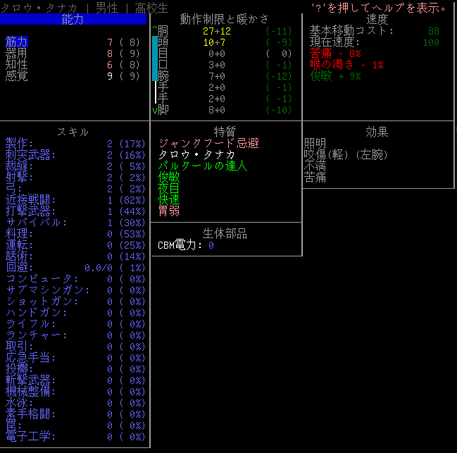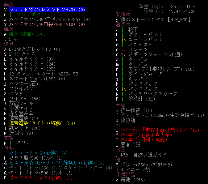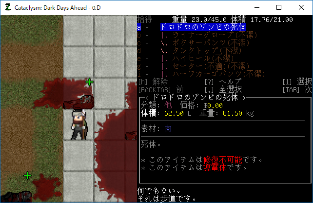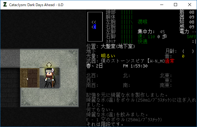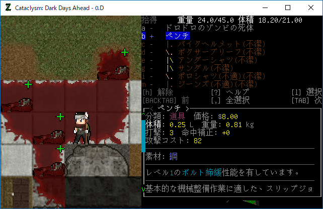 この投稿は「Cataclysm Dark Days Ahead」のプレイ日記です。毎日更新をします。目次はこちら。