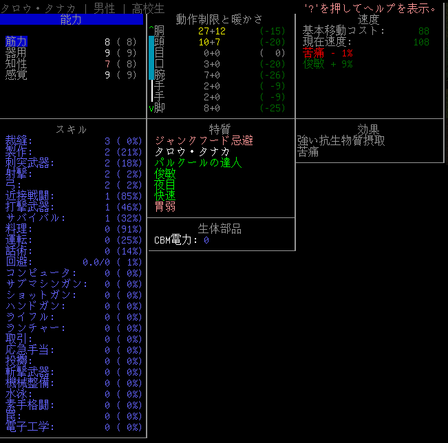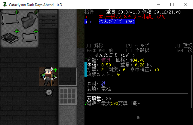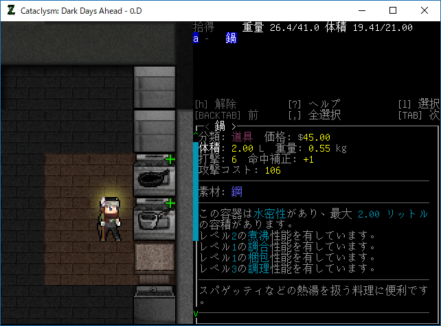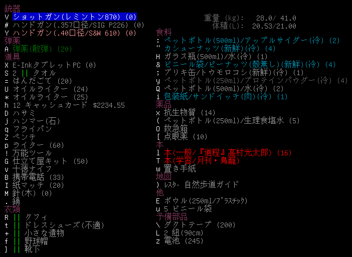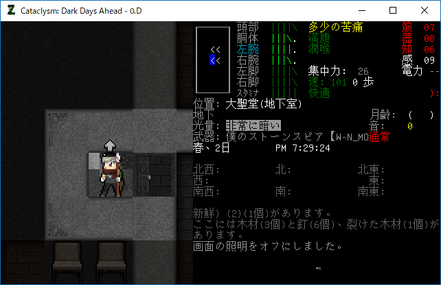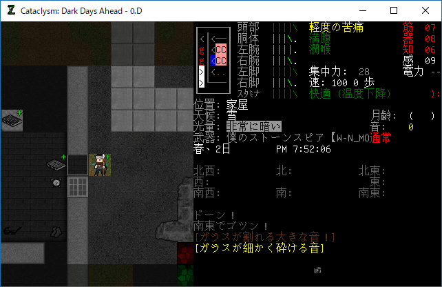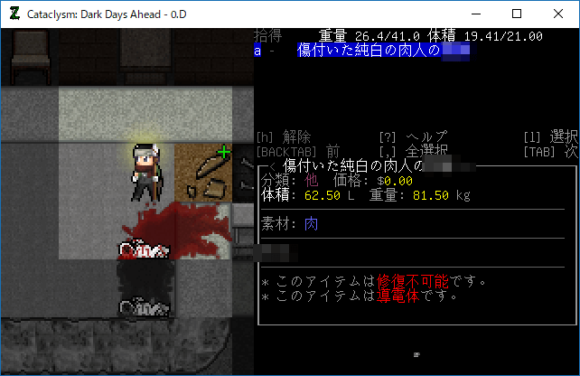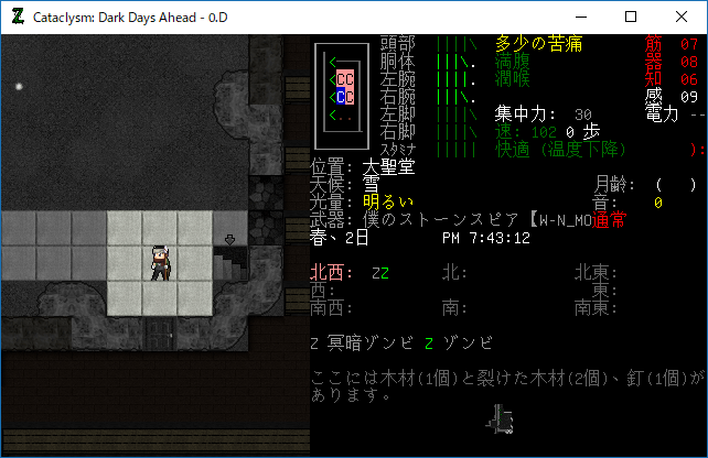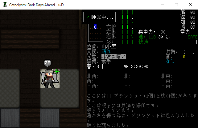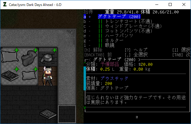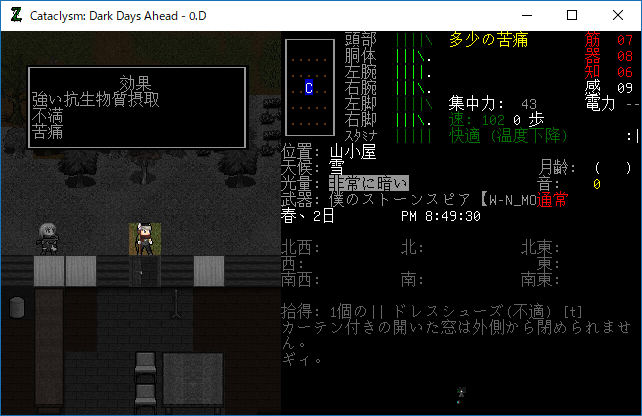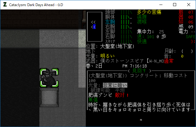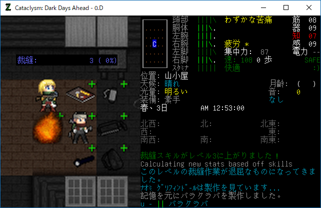 この投稿は「Cataclysm Dark Days Ahead」のプレイ日記です。毎日更新をします。目次はこちら。