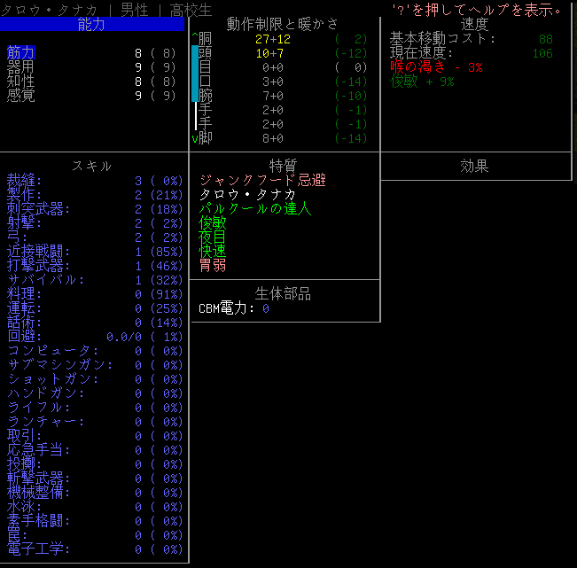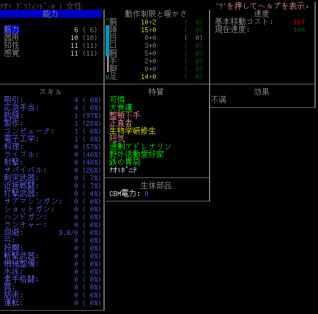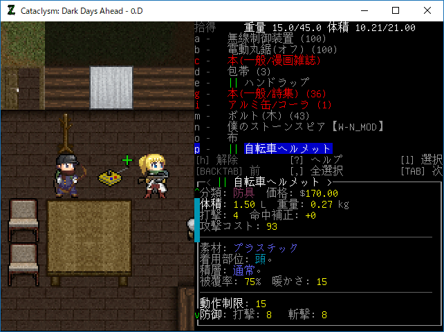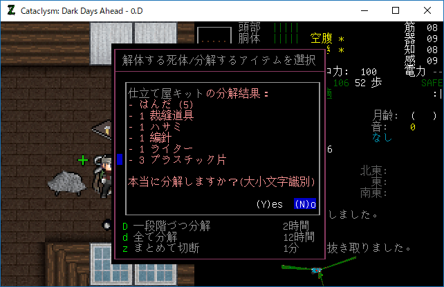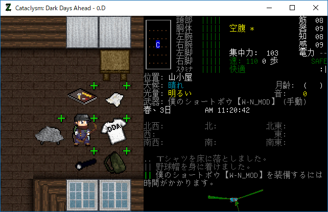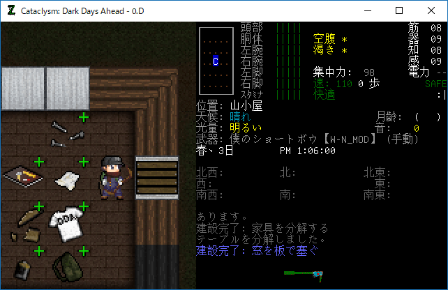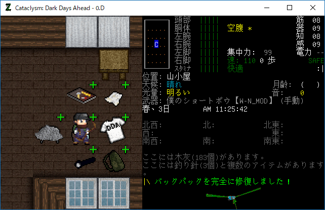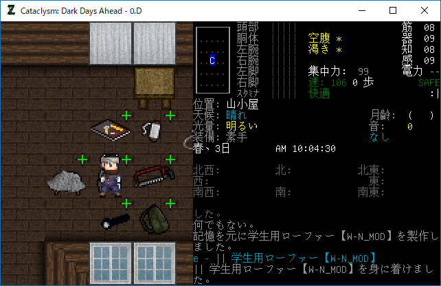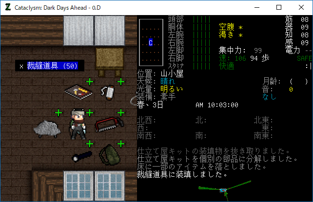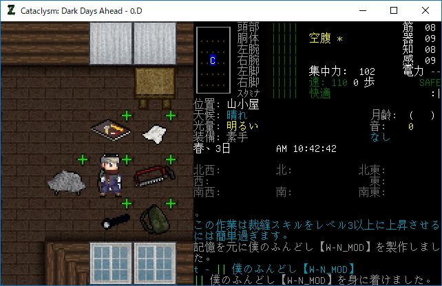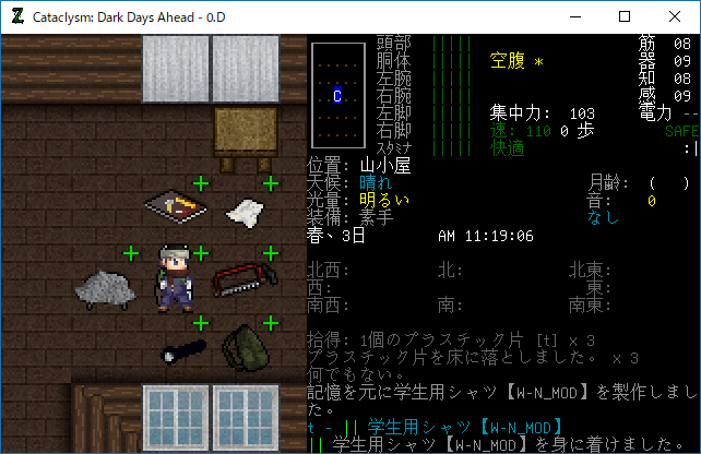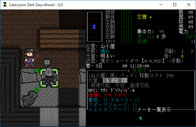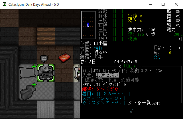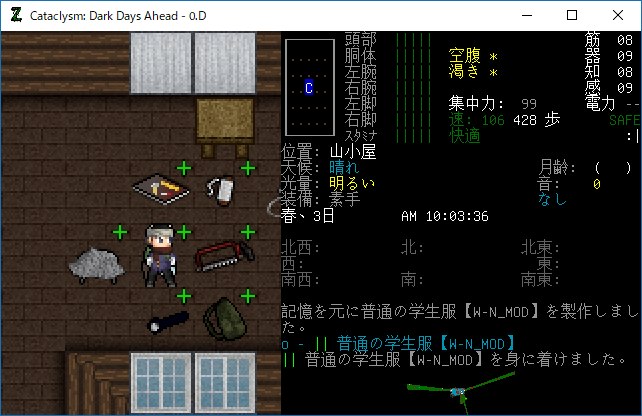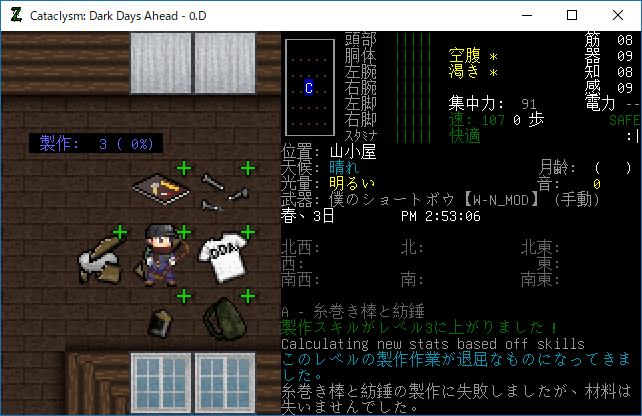 この投稿は「Cataclysm Dark Days Ahead」のプレイ日記です。毎日更新をします。目次はこちら。