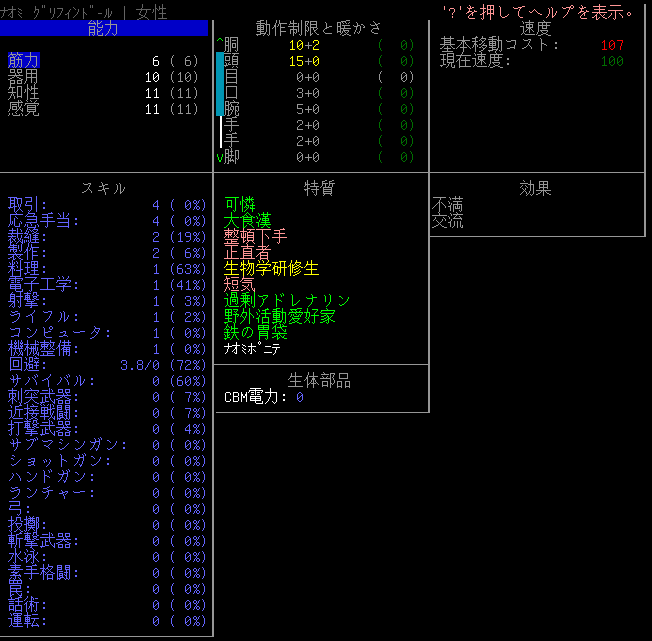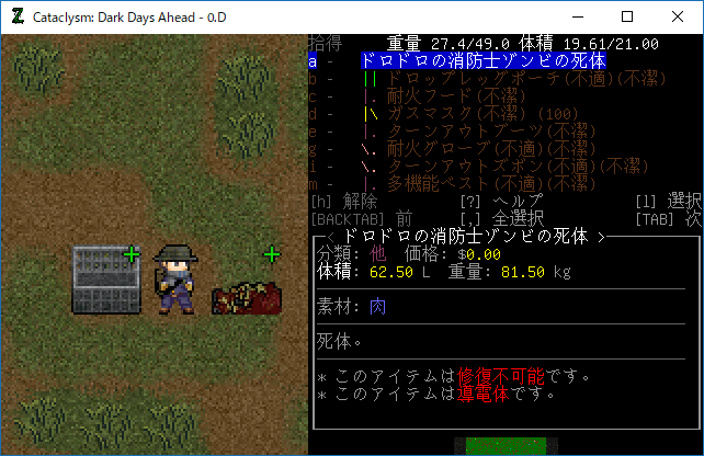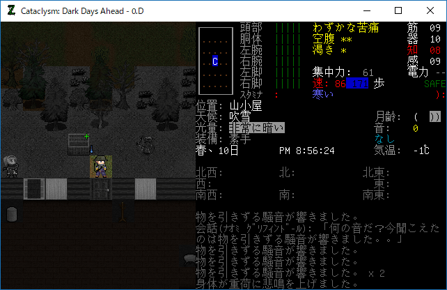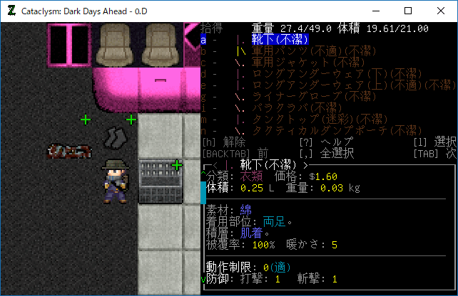 この投稿は「Cataclysm Dark Days Ahead」のプレイ日記です。毎日更新をします。目次はこちら。