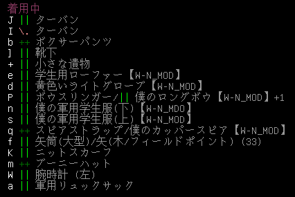 タロウ・タナカの防具は上の画像になりました。まだまだ頼りないと言わざるを得ない。なるべく弓を使うよう心掛けます(無理だった)。