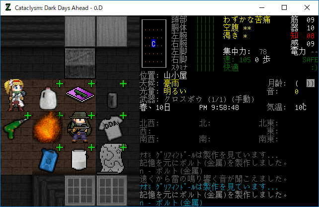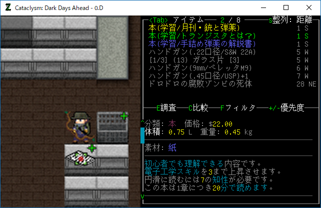 この投稿は「Cataclysm Dark Days Ahead」のプレイ日記です。毎日更新をします。目次はこちら。