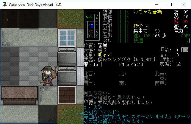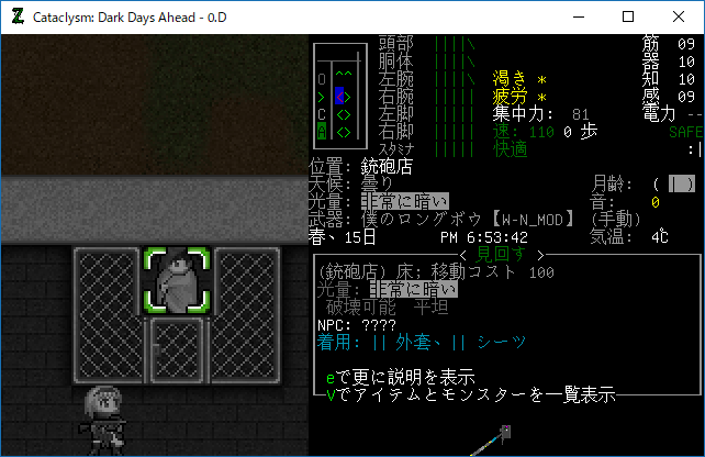 この投稿は「Cataclysm Dark Days Ahead」のプレイ日記です。毎日更新をします。目次はこちら