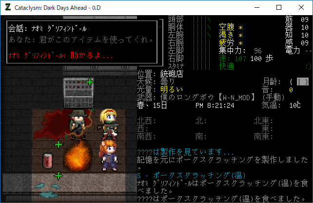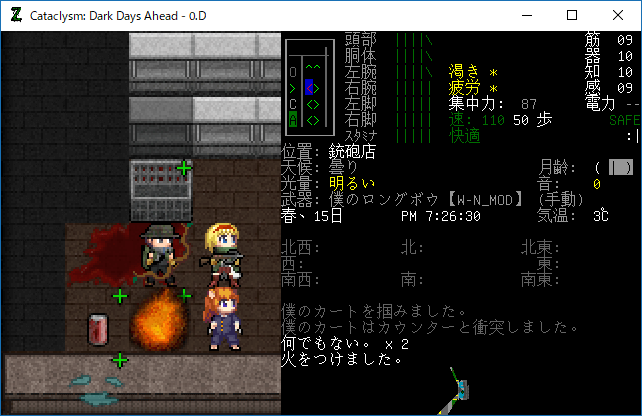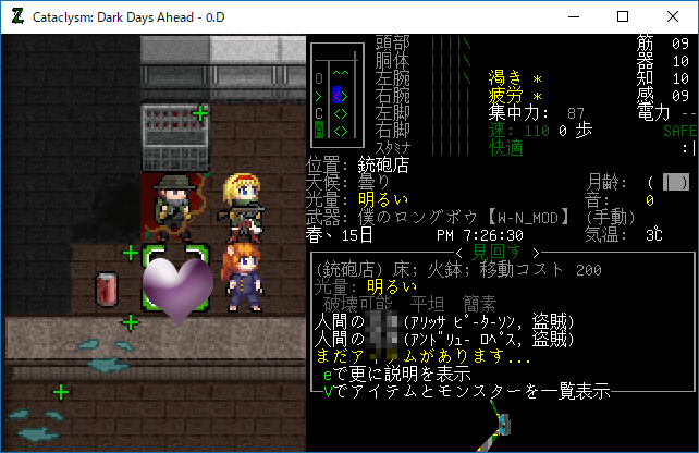 Cataclysmのプレイ日記を始めます。銃砲店に立て籠もる盗賊達を全滅させました。そしてケモミミNPCと合流を果たしたのです。これからは愉快な仲間達と頑張っていきます。