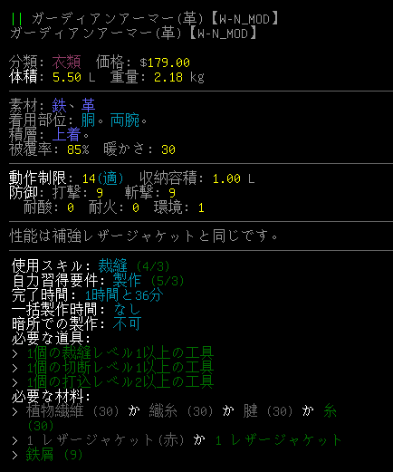 記載されていたレシピを見よう見まねで再現しよう。『ガーディアンアーマー』という鎧を製作しようかな。俺の裁縫スキルでは『補強レザージャケット』と同じ性能にするのが精一杯だった。