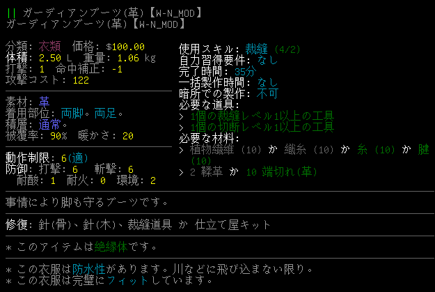 まだまだ提案書に書かれているレシピは沢山あります。次はガーディアンブーツをクラフトするぞ。こいつの性能は『ブーツ』と同じだが、事情により着用部位を『両脚、両足』に改造しておいた。
