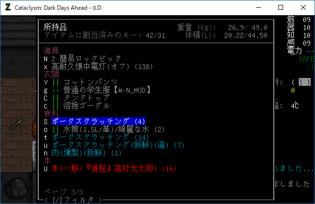 この投稿は「Cataclysm Dark Days Ahead」のプレイ日記です。毎日更新をします。目次はこちら