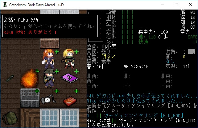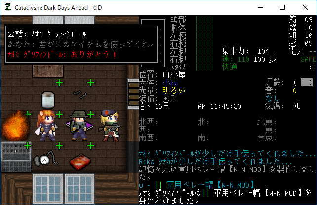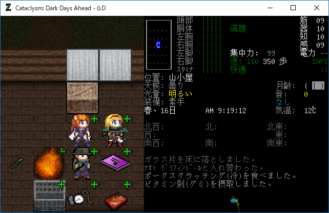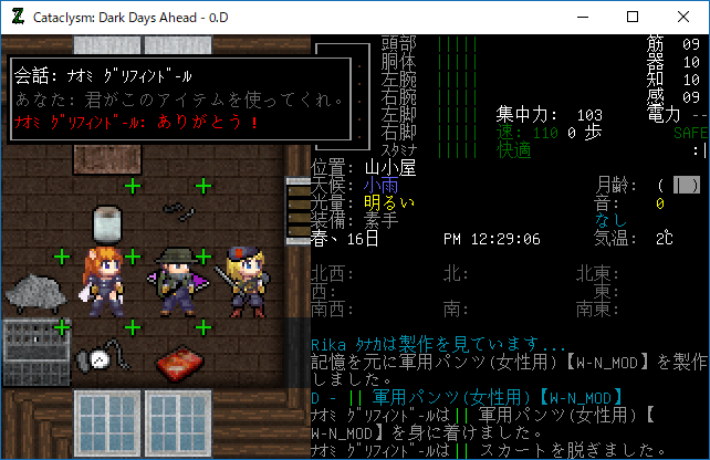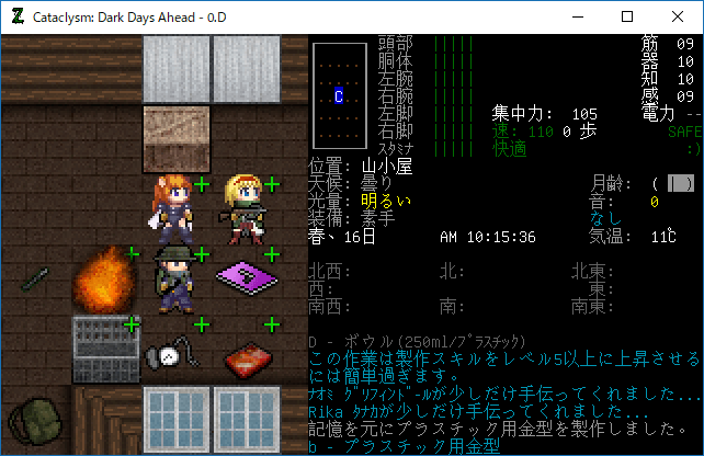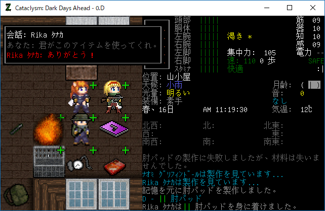 (書き殴りました。修正は後日になります)。Cataclysmのプレイ日記を始めます。仲間のNPCと一緒にレスターを攻略していこう。外出する前に色々とクラフトをしたい物があります。しばらくはクラフトばかりする事になるだろうな。