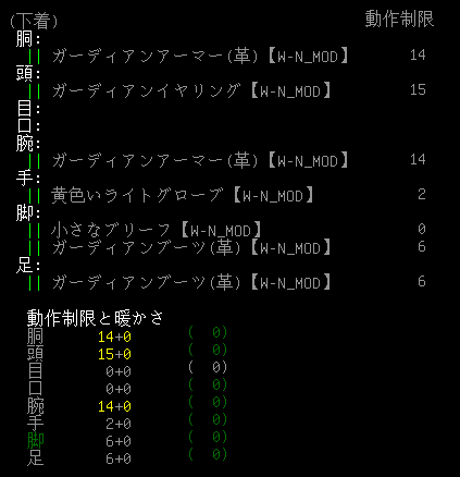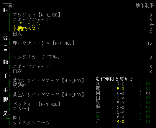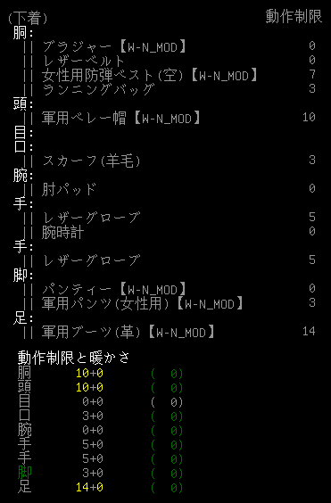 ナオミちゃんの装備は上の様になっていた。加入時点から全く変わっておりません。靴下と下着以外は新しい物に交換します。