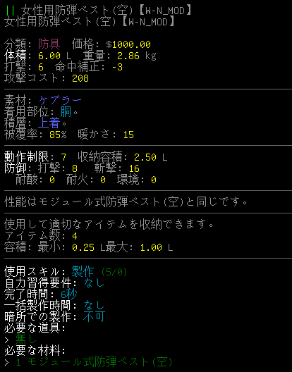 クラフトを利用してモジュール式防弾ベストのタイルを変えます。この防弾ベストはアイテムを収納できるし便利ですね。タロウ・タナカに装備させたいくらいだ。