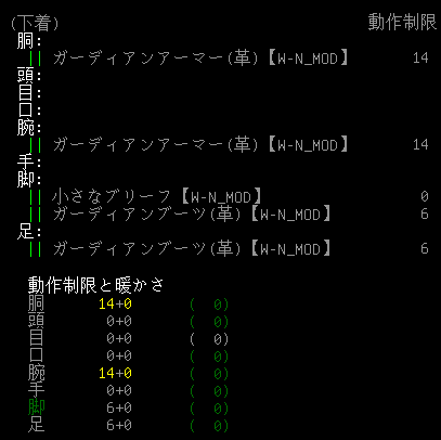 今回の投稿では防具のクラフトを行います。上の画像はケモミミの防具です。『頭』、『口』、『手』、『腕』を保護する防具がありません。